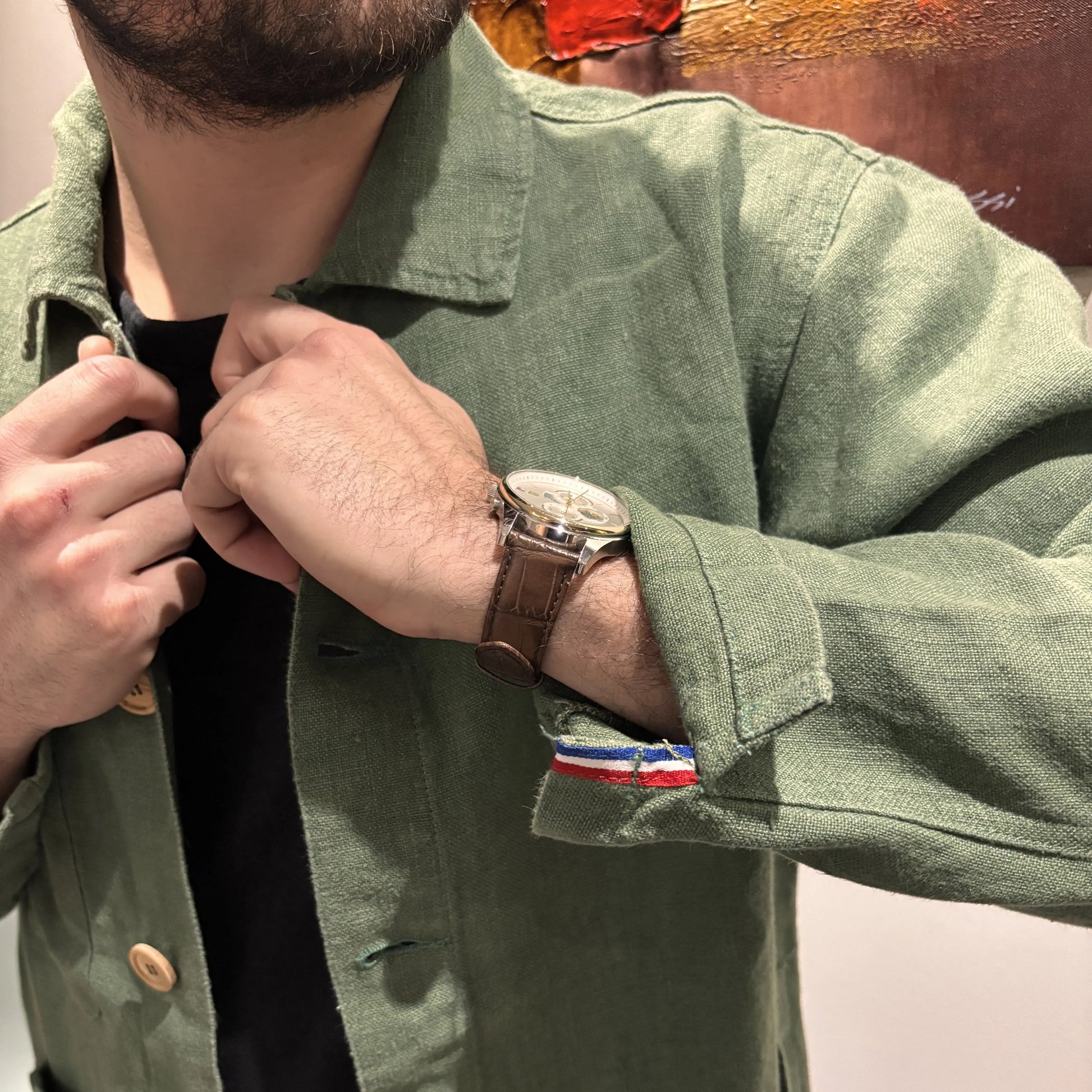 - Confectionné en Île-de-France, au sein d’un atelier reconnu pour sa précision et son expertise, garantissant des finitions impeccables.